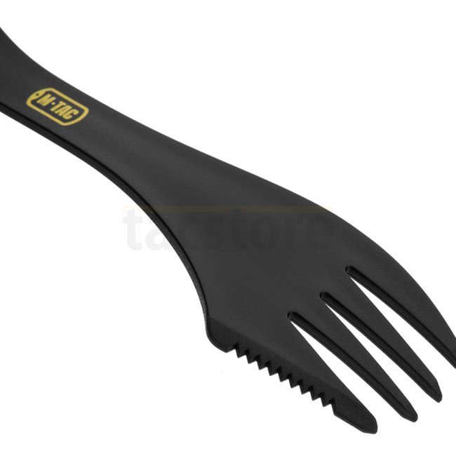 M-Tac Universel Couverts - Noir : Combo cuillère, fourchette et couteau en plastique de qualité alimentaire, économisant de l'espace et du temps.