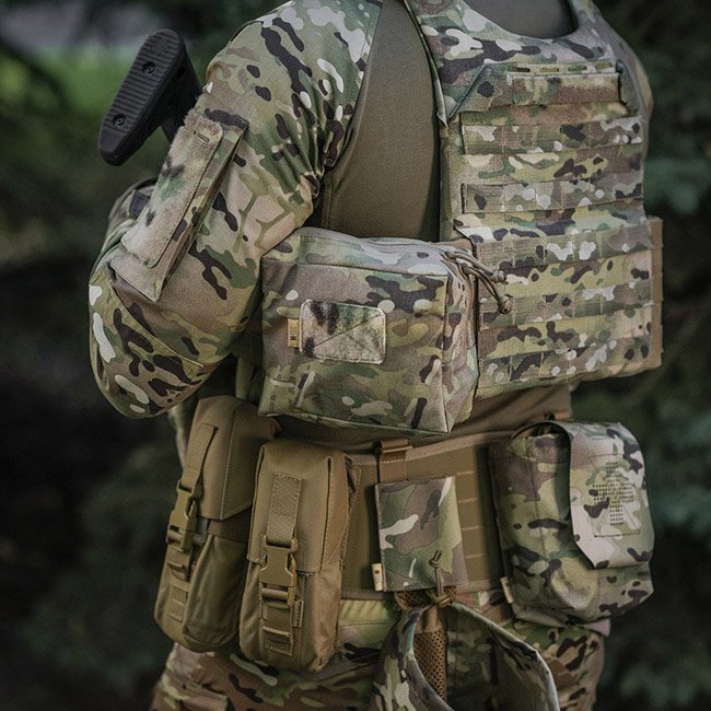 Fabriqué en Cordura 500D - tissu super résistant, résistant à l'abrasion et aux charges élevées. Le résumé est attaché à l'équipement à l'aide de l'interface MOLLE, réalisée à l'aide de la technologie Laser Cut. Le panneau velcro avant est conçu pour attacher des identifiants ou vos patchs préférés.