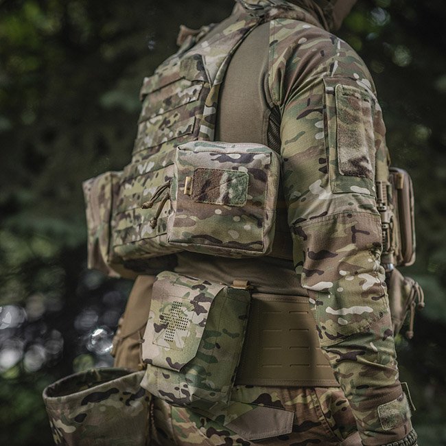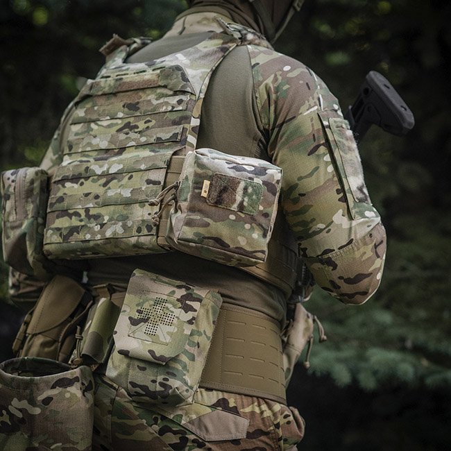 Fabriqué en Cordura 500D - tissu super résistant, résistant à l'abrasion et aux charges élevées. Le résumé est attaché à l'équipement à l'aide de l'interface MOLLE, réalisée à l'aide de la technologie Laser Cut. Le panneau velcro avant est conçu pour attacher des identifiants ou vos patchs préférés.