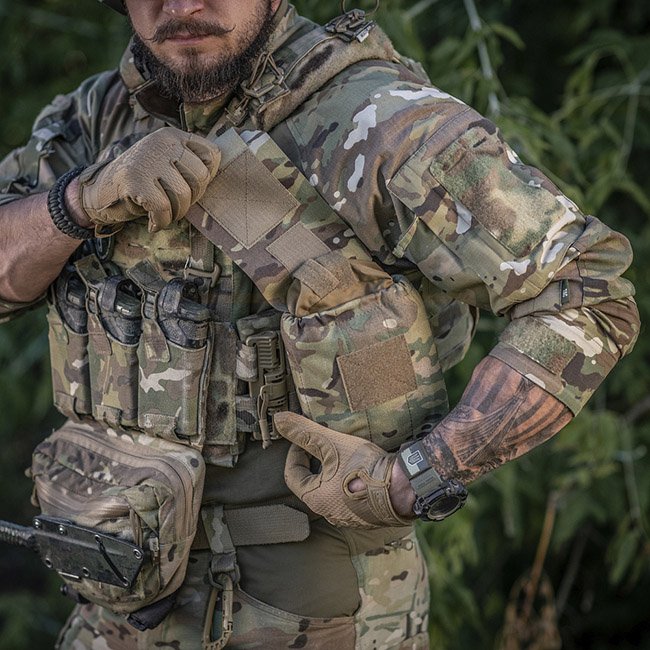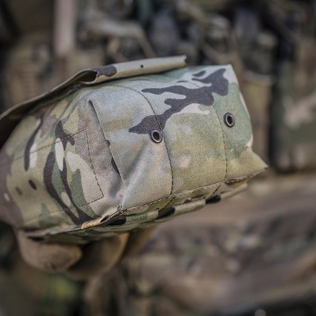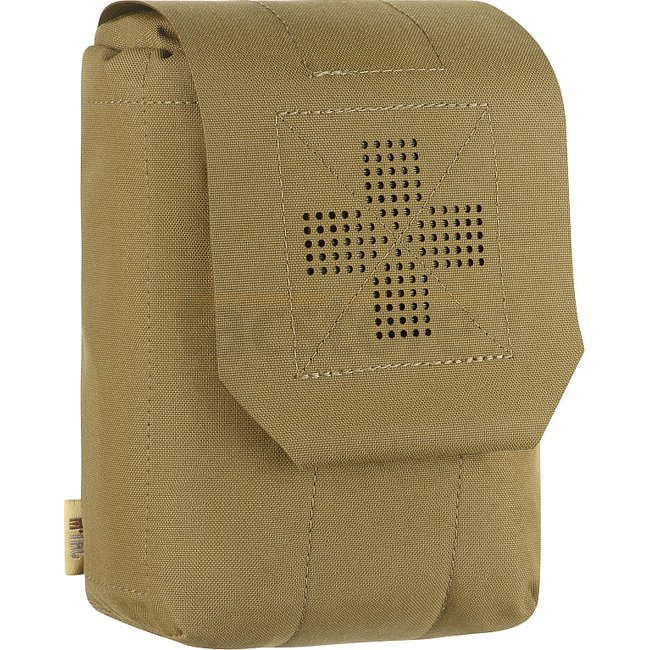 La pochette extérieure est en Cordura 500D - un matériau durable qui résiste à l'abrasion et aux charges élevées. Les parois latérales intérieures sont en nylon élastique, grâce auquel il conserve sa forme. Un élément de fixation supplémentaire est une sangle qui vous permet de maintenir en toute sécurité la trousse de premiers secours, même pendant l'activité. Se fixe à l'équipement à l'aide de l'interface MOLLE.