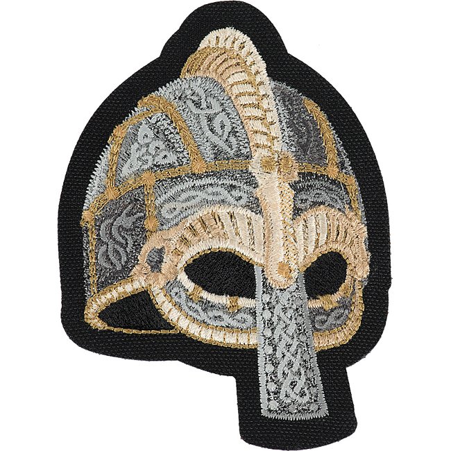Écusson brodé "Casque Viking" M-Tac - Noir, fabriqué en nylon Cordura 500D avec surface arrière à crochets. Dimensions : 70 x 50 mm.