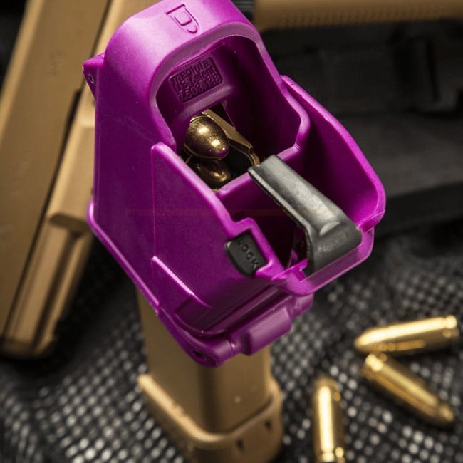 L'UpLULA® Loader est un chargeur de chargeur de pistolet universel de poche conçu pour charger et décharger pratiquement tous les chargeurs single et double ctack de 9 mm à .45ACP de tous les fabricants. Il est également compatible avec la plupart des chargeurs .380ACP à pile single et double et 1911. Le chargeur UpLULA® s'adapte automatiquement au chargeur et le charge facilement, sans douleur et de manière fiable !