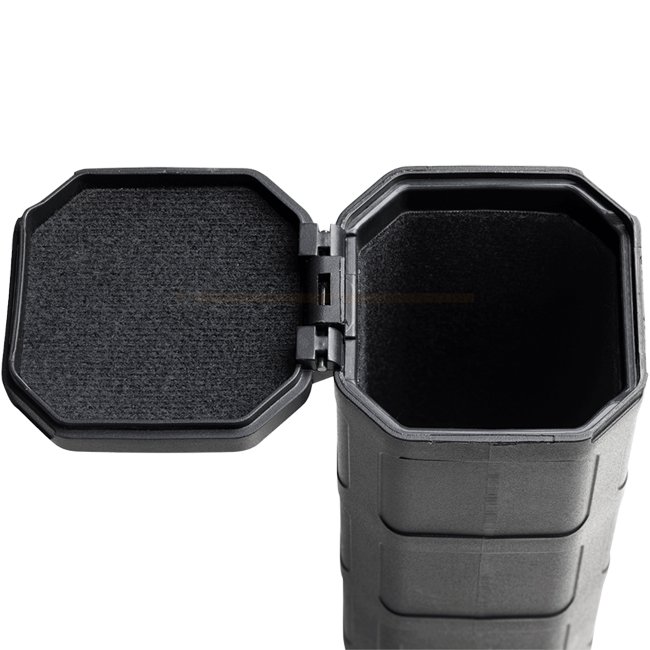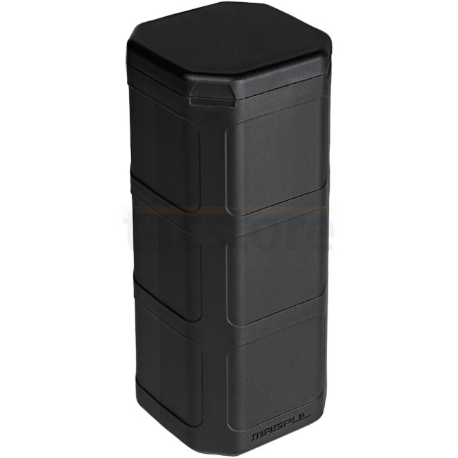 Boîte compacte et durable Magpul DAKA de couleur noire élégante, mesurant 162,6 x 63,5 x 68,6 mm à l'extérieur avec des dimensions internes de 152,4 x 53,6 x 53,6 mm. Fabriquée à partir de matériau polymère léger, elle pèse 110 g.