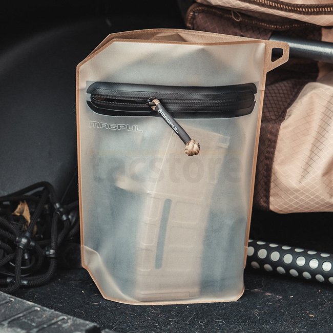 Une pochette de grande taille résistante aux éclaboussures et à la poussière, fabriquée par Magpul pour stocker et protéger les petits objets des conditions météorologiques. La construction du sac lui permet de tenir debout tout seul