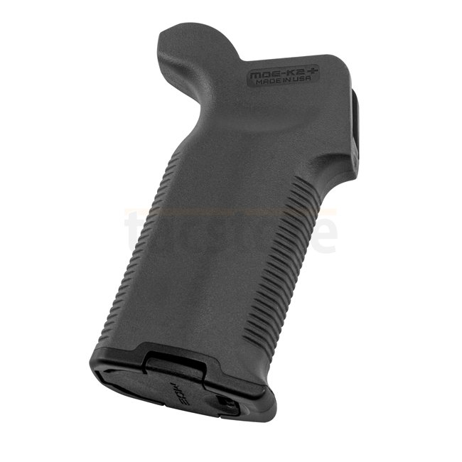 MOE K2+ Grip par Magpul associe un corps en polymère renforcé et un surmoulage caoutchouc pour un contrôle sûr. Offre un angle de prise plus vertical (env. 17°), un dos beavertail pour un meilleur positionnement du doigt de détente, un bord inférieur dur pour limiter les accrochages et compatibilité avec Storage Cores optionnels. Montage direct sur AR15, M4, AR10, M16, M110 et SR25.