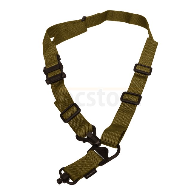 Magpul MS3 Gen 2 Single QD Sling - Coyote : Basculez rapidement entre les configurations à un point et à deux points. Comprend un pivot QD à bouton-poussoir robuste pour l'attache arrière de l'arme. Nouveau curseur d'ajustement rapide à profil bas pour un