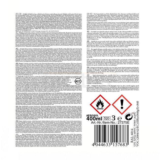 Peinture en spray MFH Army 400 ml - Vert Olive - Vernis résine nitro-combiné pour métal, bois, pierre, verre, polystyrène et plastique. Sèche au toucher en environ 20 minutes, complètement sec en environ 12 heures. RAL6014. Quantité maximale de commande =