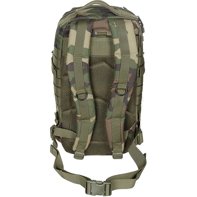 Le sac à dos MFH Assault 1 - Woodland est un sac à dos polyvalent avec des bretelles réglables et rembourrées, une ceinture détachable et une partie dorsale rembourrée avec un compartiment pour un sac d'hydratation. Il dispose de diverses poches, de matér