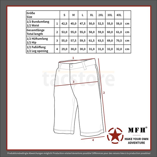 MFH BW Bermuda Shorts - Flecktarn - L. 65% Coton, 35% Polyester. 2 poches pour jambes avec rabat, 2 poches pour pantalon, zip avant, 1 poche de hanche avec fermeture à bouton, passants de ceinture d'environ 5 cm, boutons de bretelles à l'extérieur de la t