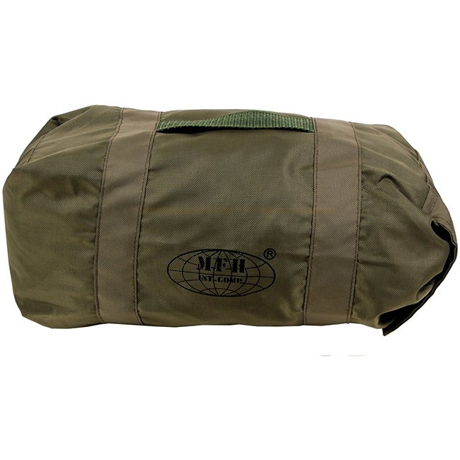 Filet de camouflage MFH 3 x 6 m en olive, 3 nuances, anneaux métalliques, sac de transport inclus. Matériaux : filet de camouflage et filet de transport en 100% polyester.