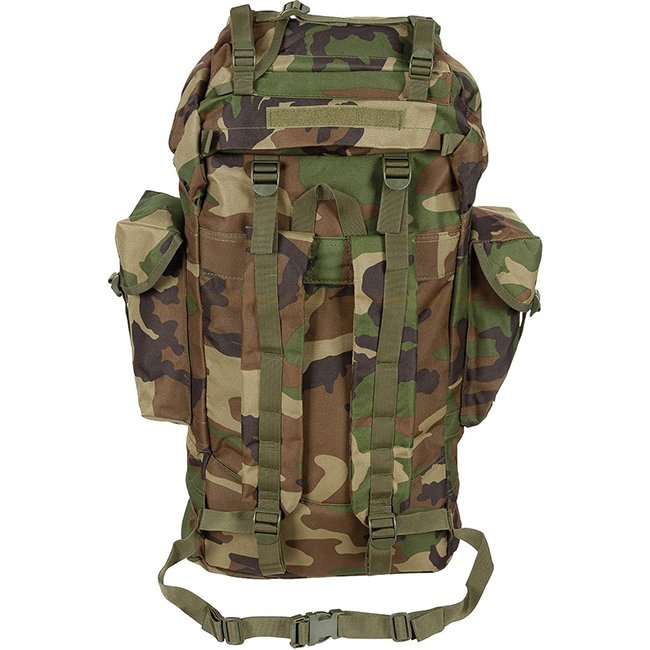 Sac à dos de combat MFH 65 l - Woodland - Bretelles rembourrées et ajustables, ceinture abdominale, poignée supérieure, divers compartiments, poches et sangles. Capacité : 65l. Dimensions : 43 x 63 x 21 cm. Poids : 1.3kg. Fabriqué en 100% Polyester.