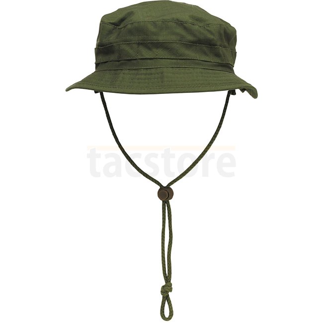 Chapeau de brousse classique de l'armée GB avec bord multicouches et boucles périphériques. Bride de menton avec bloque-cordon. Fabriqué en 65 % polyester et 35 % coton.