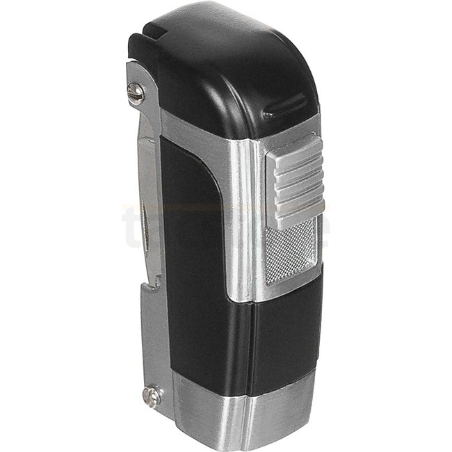 Briquet multiusage coupe-vent avec couteau intégré, tire-bouchon et ouvre-bouteille. Rechargeable et réglable en flamme. Dimensions : environ 7 x 3,5 x 2 cm.
