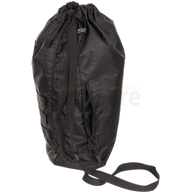 Sac de sport MFH OctaTac - Noir : Bretelles ajustables, petite poche à glissière, 1 grand compartiment principal, panneau Velcro, à l'intérieur 2 petites poches en filet, 2 grandes poches à glissière, 1 poche zippée, panneau Velcro avant, boucles de fixat