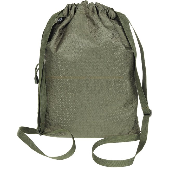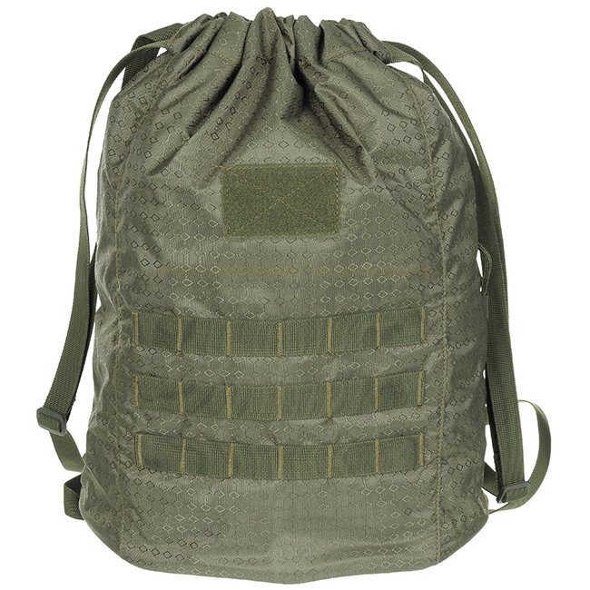 Sac de Sport MFH OctaTac - Olive : Bretelles ajustables, multiples poches, panneau velcro, boucles d'attache Molle, base renforcée. Capacité : 20L. Dimensions : 32 x 40 x 17 cm. Matière polyester légère.