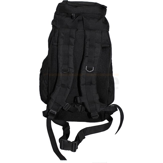 Sac à dos MFHHighDefence Recon 3 35 l - Noir - Bretelles rembourrées ajustables, anneaux en D en plastique, sangles pectorales et de taille, partie arrière stable, rembourrage en maille respirante, poignée supérieure, couvercle avec fermeture à clic, poch