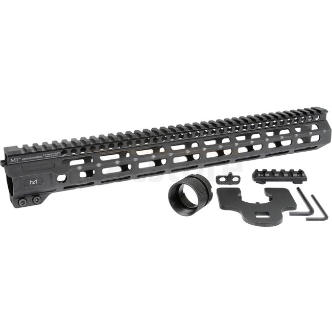 MIDWEST INDUSTRIES Garde-main flottant monobloc Combat Rail M-LOK 15 : Garde-main léger et durable compatible avec les récepteurs supérieurs forgés standards. Comprend un écrou de canon traité thermiquement 4140, une clé, une plaque de couple, une constru