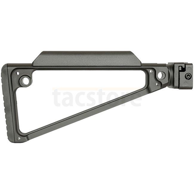 La Triangle Side Folding Stock adopte une conception très rigide avec un mécanisme latéral robuste en acier 4140 et une nervure de verrouillage sur toute la longueur pour un blocage sûr en position ouverte ou fermée. Le corps est en aluminium 6061 avec anodisation dure, avec joue en polymère et plaque de couche en caoutchouc pour plus de confort.
