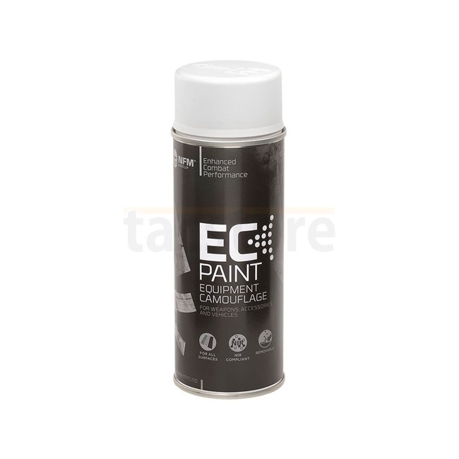 NFM EC Spray Camo Couleur - Blanc : Disruption des formes artificielles, Intégration dans l'environnement, Gestion de la signature de vision nocturne, Adaptabilité à la zone d'opération, Réduction de la température de l'arme sous l'exposition solaire.