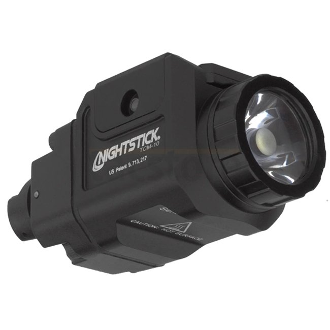 La Nightstick TCM‑10 est une lampe compacte montée sur arme pour usage tactique. Fonctionnant avec une seule pile CR123, elle produit 650 lumens. Une lentille TIR optimisée projette un spot net avec halo défini pour la conscience de la scène. L’unité dispose de commutateurs à bascule ambidextres pour les modes momentané ou constant, ainsi que de modes stroboscope et sécurité programmables. La construction est en aluminium grade aéronautique avec corps arrière en polymère.
