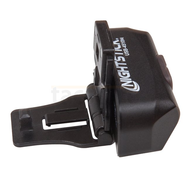 Le Nightstick USB‑4510M est une lampe compacte à faisceau large avec illumination sélectionnable blanche, rouge ou verte, conçue pour se clipser solidement sur les bandes MOLLE, PALS ou les sangles. Fabriquée en polymère robuste et classée IP‑X7, elle résiste à l’immersion et aux usages intensifs.