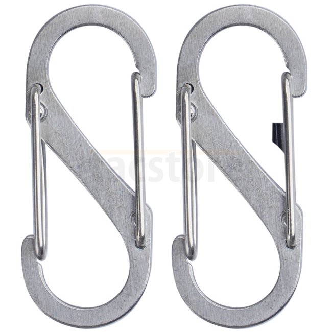 Nite Ize Dual Carabiner En Acier Inoxydable #1 - Argent. Acier inoxydable avec des dimensions de 40 x 15 x 0,5 mm, pèse 10g, supporte une charge max de 2,3 kg.