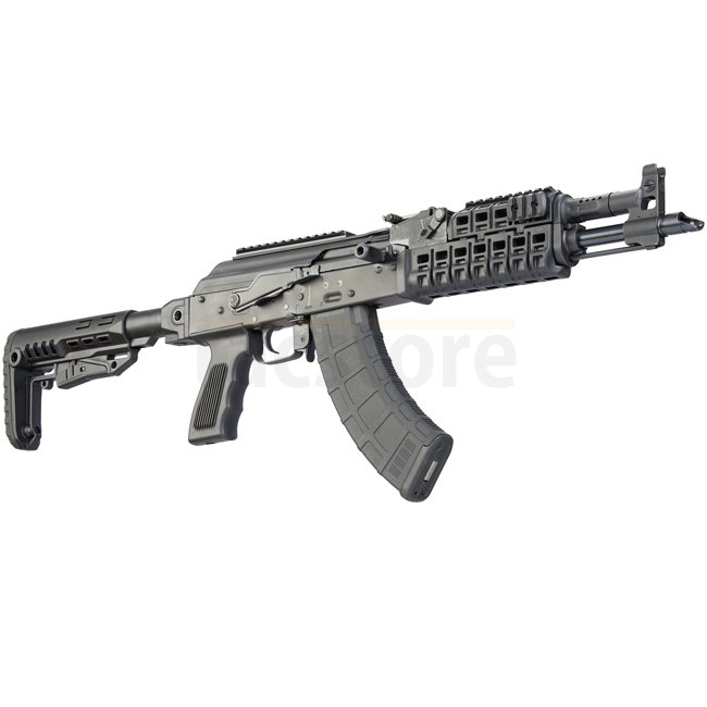 Fusil AK tactique léger et compact conçu pour des scénarios de tir de proximité tout en conservant la robustesse de la plateforme AK ; prêt pour l’ajout d’accessoires modernes.