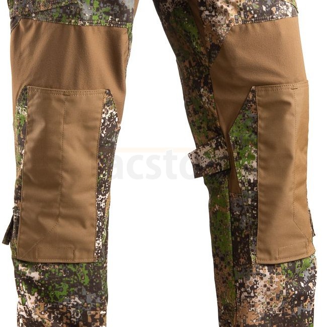 Le matériau extensible 4 directions TWEAVE Durastretch original de la production américaine est utilisé au niveau des genoux, du dos et de l'entrejambe. La genouillère est en nylon CORDURA 500D. Les fermetures à glissière YKK et le VELCRO original dans la couleur / le camouflage du pantalon complètent la gamme de matériaux de haute qualité.
