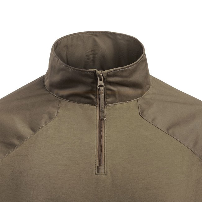 Grâce à sa conception compacte et à ses matériaux de haute qualité, l'Advanced Combat Shirt avec sa coupe moderne peut résister aux conditions d'utilisation les plus difficiles. Un col mi-haut protège contre les débris et les coquillages. Grâce à sa coupe ajustée, il n'interfère pas avec le port d'un porte-plaque. Il en va de même pour la fermeture à glissière utilisée, très plate au niveau de la poitrine et dotée de deux rabats de protection au niveau du menton, ce qui évite de blesser le porteur lors de sa fermeture. Pour éviter les points de pression inutiles, toutes les coutures sont maintenues à plat.