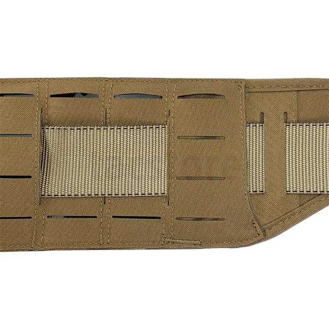 De chaque côté, la Battle Belt Platform a une ouverture vers le bas afin de faciliter l'installation d'un adaptateur d'étui low ride. Alternativement, des fentes verticales permettent à l'utilisateur d'acheminer la ceinture Cobra vers la surface extérieure pour installer un étui.