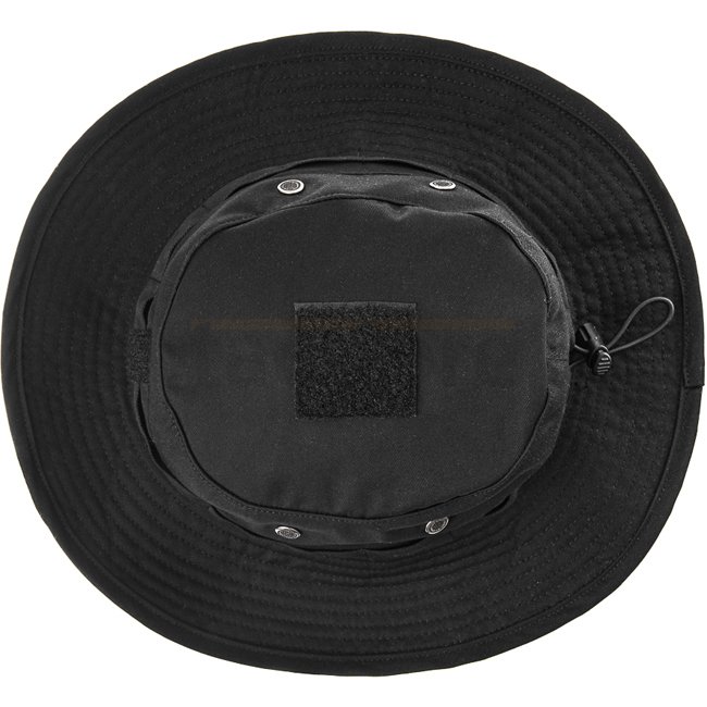 Tout en conservant la forme classique d'un bonnet Boonie, le haut est légèrement incliné et mesure 40mm de haut à l'avant et 50mm à l'arrière. Sur la partie supérieure, une surface de boucle de 50 x 50mm peut être trouvée pour attacher un patch réfléchissant infrarouge. Sur les côtés, on peut trouver des oeillets pour la circulation de l'air: suffisamment petits pour empêcher la pluie, suffisamment grands pour assurer une ventilation de base. Autour du chapeau, nous avons utilisé le même matériau polyester-coton au lieu d'une sangle rigide, garantissant ainsi une signature infrarouge faible. Sous la circonférence, un cordon de serrage est cousu, ce qui permet un réglage de la taille. En continu pour un ajustement parfait, en maintenant la taille choisie à l’aide d’un bloqueur de cordon à l’arrière. Le bord est légèrement moins large que d'habitude. Juste parfait comme on trouve. Toutes les autres caractéristiques des modèles standard, telles que la mentonnière ou un protège-nuque, ont été laissées de côté. Fonctionnalité par simplicité.