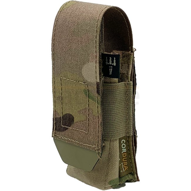 La Closed Single Pistol Magazine Pouch peut contenir les chargeurs à pistolet double-stack habituels, même les plus larges .45 cal. chargeurs conviennent. Les chargeurs Single-Stack également s'adapter, mais ne sont pas trop serrés. Pour une meilleure prise sur le chargeur, la poche est entourée d’un élastique. La languette en Hypalon hautement résistante et légèrement élastique, simplifie l’ouverture, même lorsque vous portez des gants.
