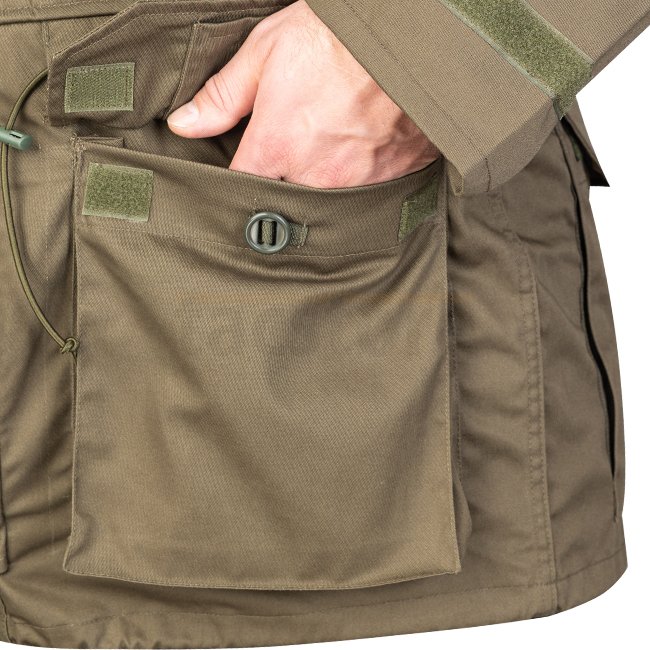 • Capuche Ajustable: La capuche peut être ajustée en circonférence et en hauteur, s’adaptant confortablement aux casques balistiques.