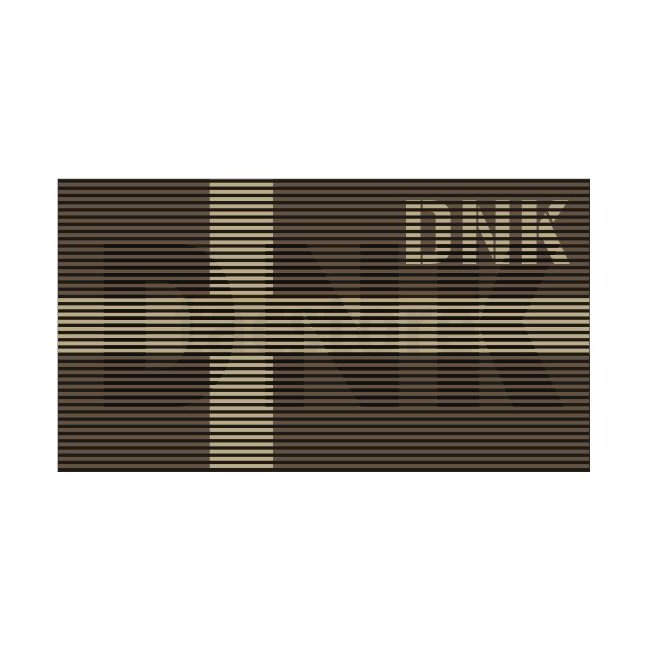 Fourche à foin Danemark IR double patch - Coyote. Avant : feuille IR, Arrière : surface à crochet. Dimensions : 90 x 50 mm.