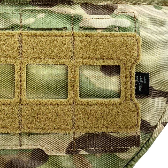 La poche avant est dotée d'un velcro à l'intérieur pour permettre l'installation d'accessoires supplémentaires tels que des organisateurs ou un étui. Les boucles MOLLE Laser-Cut à l'avant sont utilisées pour le montage de pochettes supplémentaires, ce qui est particulièrement intéressant si la Drop Fanny Protector Pouch n'est pas accessible, par exemple en raison de poches de magazines en saillie sur le porte-plaque. Cependant, les boucles MOLLE ont également une surface velcro pour le montage des patches d'identification. De plus, puisque les bandes médianes ne sont pas cousues ensemble avec la poche, un porte-tourniquet peut être bouclé et maintenu en place en toute sécurité.