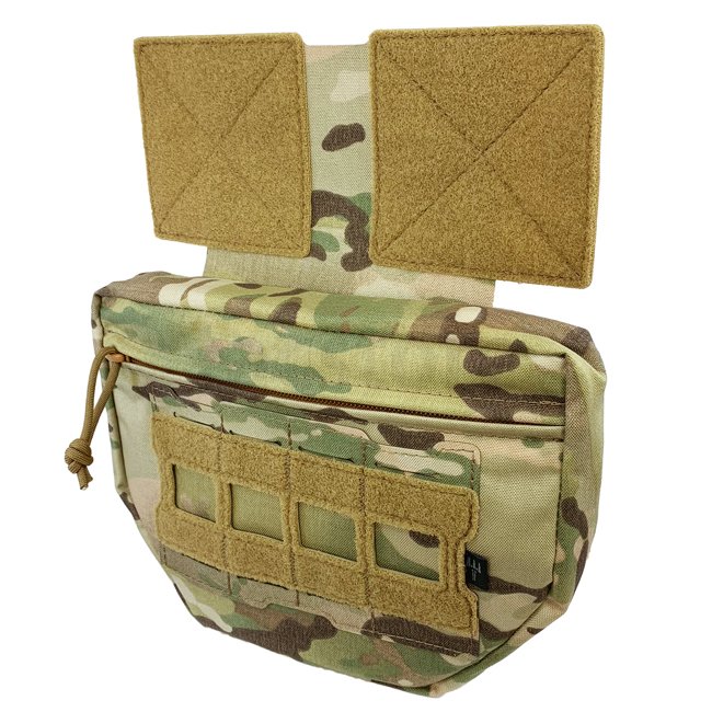 La Pochette de Protection Drop Fanny est un accessoire polyvalent pour gilets, porte-plaques et harnais de poitrine. Elle dispose d'une poche avant avec velcro pour les accessoires, de boucles MOLLE découpées au laser, et d'un compartiment pour un panneau
