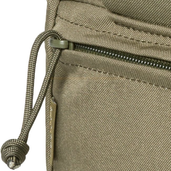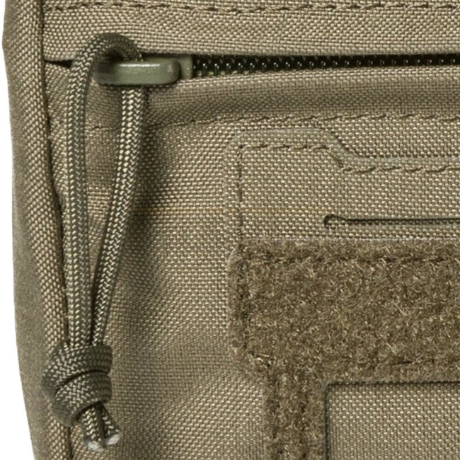 La poche avant est dotée d'un velcro à l'intérieur pour permettre l'installation d'accessoires supplémentaires tels que des organisateurs ou un étui. Les boucles MOLLE Laser-Cut à l'avant sont utilisées pour le montage de pochettes supplémentaires, ce qui est particulièrement intéressant si la Drop Fanny Protector Pouch n'est pas accessible, par exemple en raison de poches de magazines en saillie sur le porte-plaque. Cependant, les boucles MOLLE ont également une surface velcro pour le montage des patches d'identification. De plus, puisque les bandes médianes ne sont pas cousues ensemble avec la poche, un porte-tourniquet peut être bouclé et maintenu en place en toute sécurité.