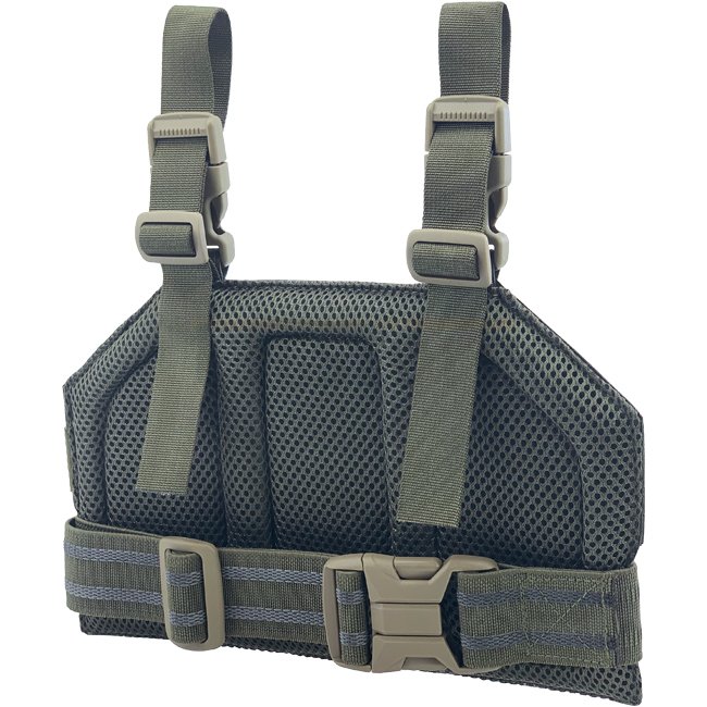 La plateforme de cuisse Pitchfork en vert Ranger est conçue pour une méthode de port "à mi-hauteur". Elle est équipée d'une boucle de sécurité à trois points, d'une bande caoutchoutée pour une meilleure adhérence, de sangles réglables, d'un maillage d'esp
