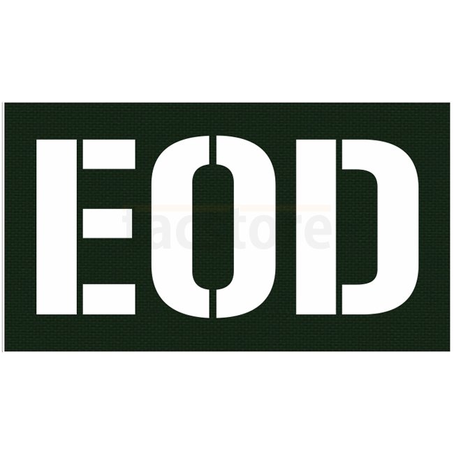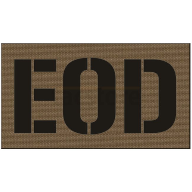 Fourche EOD IR Patch Imprimé - Coyote, fabriqué en feuille IR avec un design imprimé sur le devant et une surface à crochet au dos. Les dimensions sont de 90 x 50 mm.
