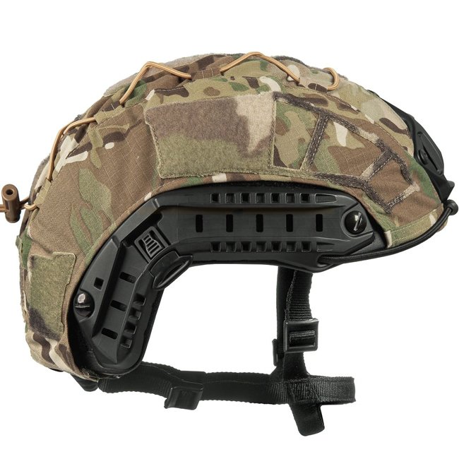 Housse de casque FAST Multicam Pitchfork fabriquée en tissu mélangé original 50/50 nylon-coton avec traitement nIR. Design futuriste avec surfaces en Velcro découpées au laser et cordon élastique pour les fixations. Taille unique convenant à la plupart, a