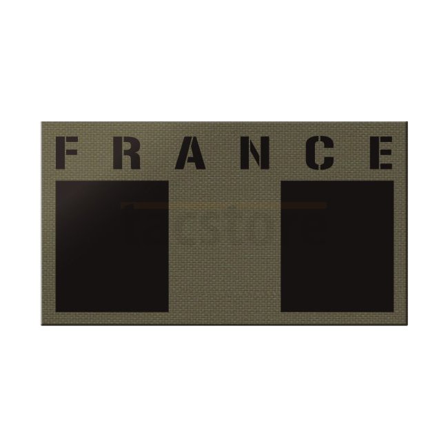Fourche à France IR Écusson Imprimé - Vert Ranger : devant en feuille IR, dos à surface auto-agrippante, dimensions 90 x 50 mm.