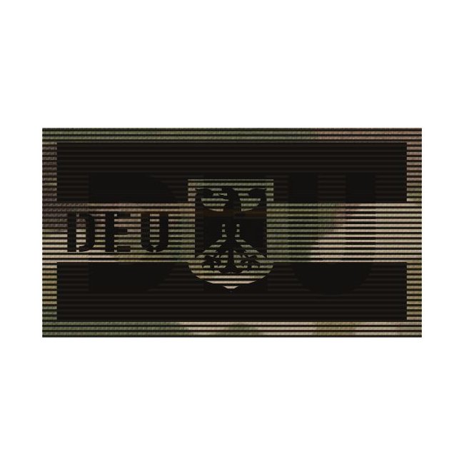 Pitchfork Germany IR Dual Patch en Multicam, doté d'une face avant en papier aluminium IR et d'une face arrière à surface velcro. Dimensions : 90 x 50 mm.