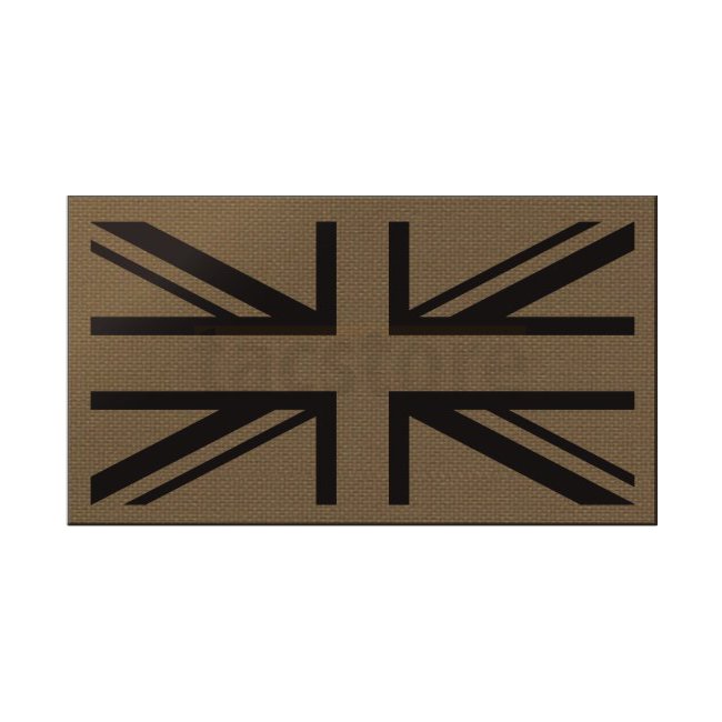 L'écusson Pitchfork Grande-Bretagne IR en Coyote présente une impression foil IR sur le devant et une surface à crochet au dos. L'écusson mesure 90 x 50 mm.