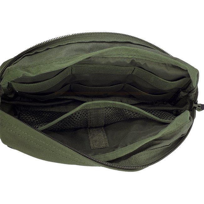 La pochette utilitaire horizontale moyenne est livrée avec une surface système MOLLE ainsi que deux bandes velcro pour les patches. À l'intérieur, deux rangées de boucles élastiques et une poche en filet de l'autre, qui peut être divisé verticalement au moyen de velcro. Cela peut stocker en toute sécurité un tas d'accessoires.