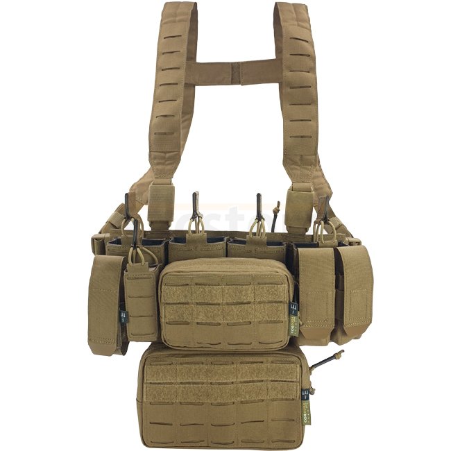 Le Pitchfork MCR Modular Chest Rig Complete Set est un Chest Rig basé sur le système MOLLE, librement configurable et livré avec une variété des poches ainsi que les sangles nécessaires aux épaules et aux hanches. L'ensemble comprend les composants suivants: