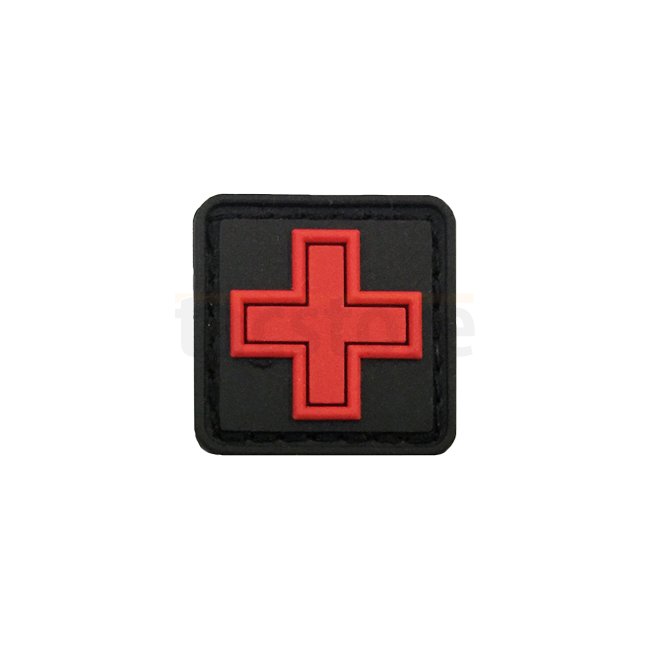 Patch de fourche à croix rouge 3D pour l'identification rapide du contenu médical. Dos velcro. Taille : 25 x 25 mm.