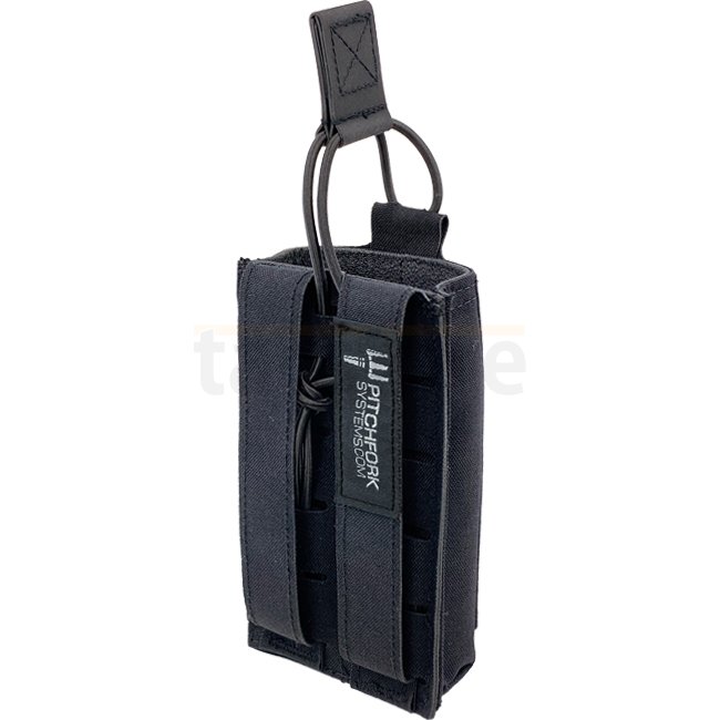 La Open Single Rifle Magazine Pouch peut garder tous les chargeurs 5.56 / .223 habituelles, même les chargeurs SIG et AK47/74 conviennent parfaitement (les chargeurs G36 ne conviennent pas). La languette Hypalon, hautement résistante et légèrement élastique, est réglable en longueur. Pour une meilleure adhérence, l'intérieur de la pochette est doublé d'un matériau antidérapant. La face avant présente une surface LaserCut basée sur le système MOLLE, qui peut être utilisée pour monter des poches supplémentaires.