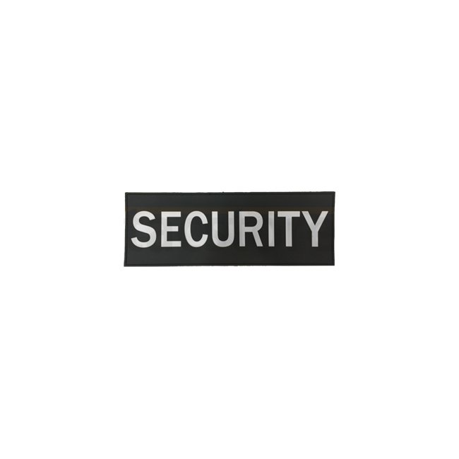 Écusson de Sécurité Pitchfork - Petit : Blanc sur écusson en caoutchouc noir avec dos Velcro, 30 x 90 mm.