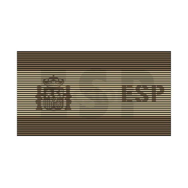 Fourche compacte avec doubles patchs IR de couleur coyote. L'avant présente une impression en feuille IR pour une reconnaissance facile, tandis que l'arrière possède une surface à crochet pour une fixation sûre. Les dimensions sont de 90 x 50 mm.