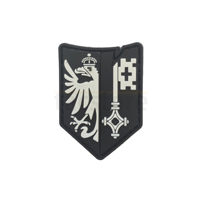 Écusson Tactique Pitchfork GE - Noir - Dos Velcro, dimensions : 37 x 45 mm